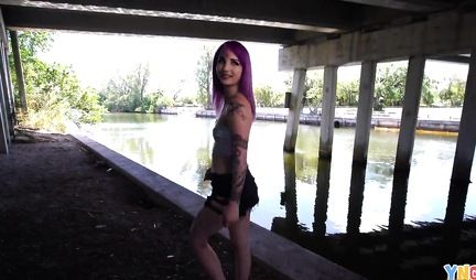 Ну вроде бы всегда Шон Лоулесс был серьезный мужик и трахался по старинке, пренебрегая разными косплеями и новомодными штучками. Но сегодня мужика заманила под мост девушка с фиолетовыми волосами. Ну так не переживайте: это не русалка и максиму что она с ним сделает - жестко оттрахает, ну а может и он ее... Начинается все замечательно и бурный секс на свежем воздухе хоть как-то помогает забыть о жаре, но после парочка перебирается на хату к молодухе, а там секс и ничего кроме секса.
